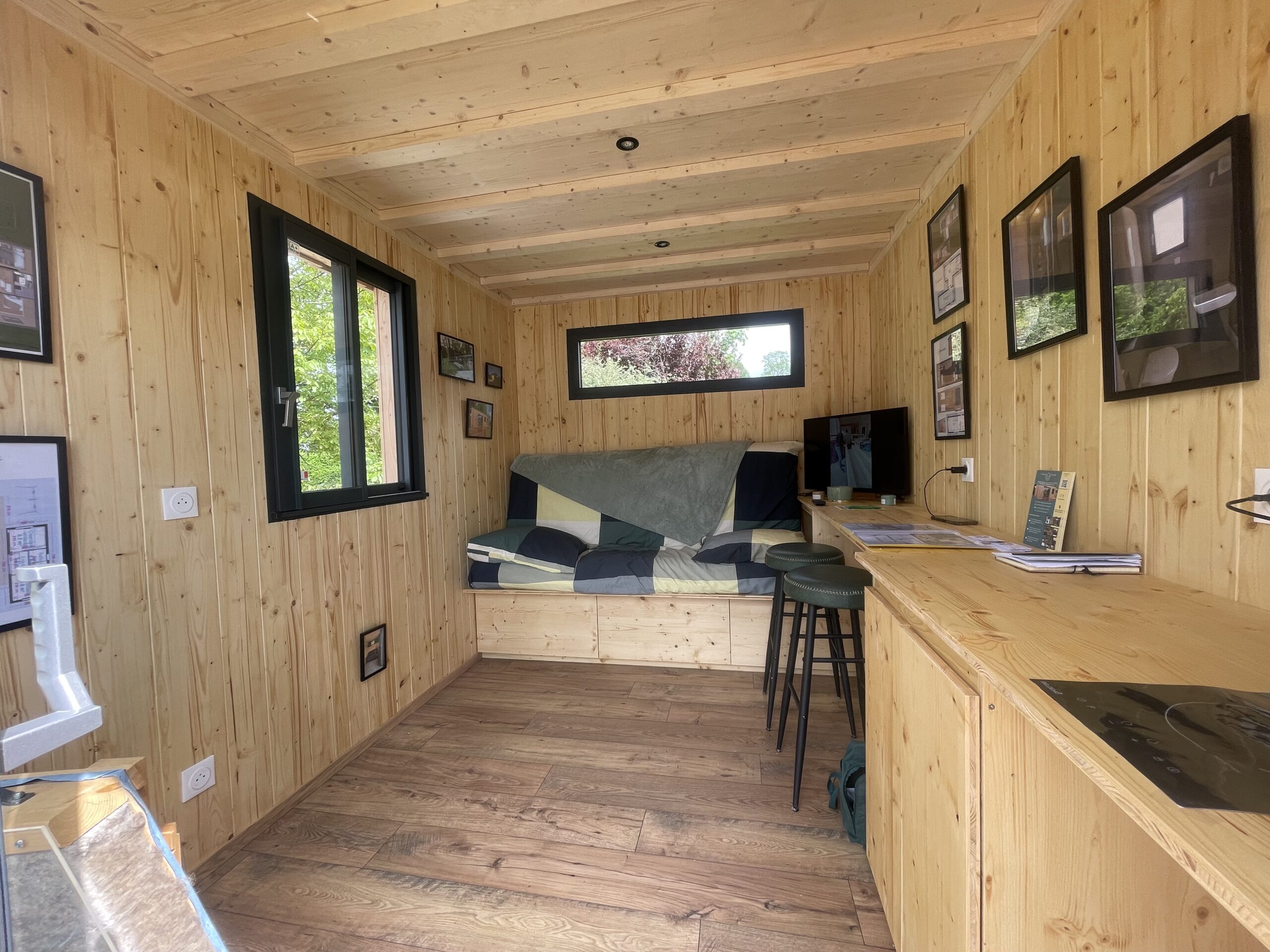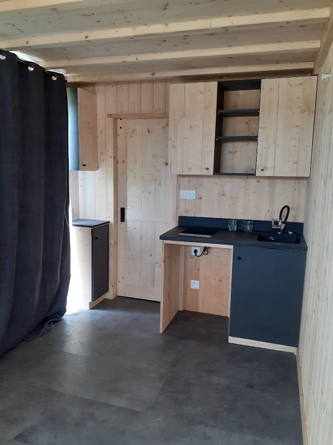 Chaque tiny house est pensée pour s’intégrer naturellement dans son environnement, tout en garantissant confort et fonctionnalité. L’isolation en laine de mouton, ressource locale renouvelable, permet de conjuguer performance thermique et approche durable. Le bois utilisé, issu de circuits courts, renforce cette démarche écoresponsable ancrée dans le territoire morvandiau.