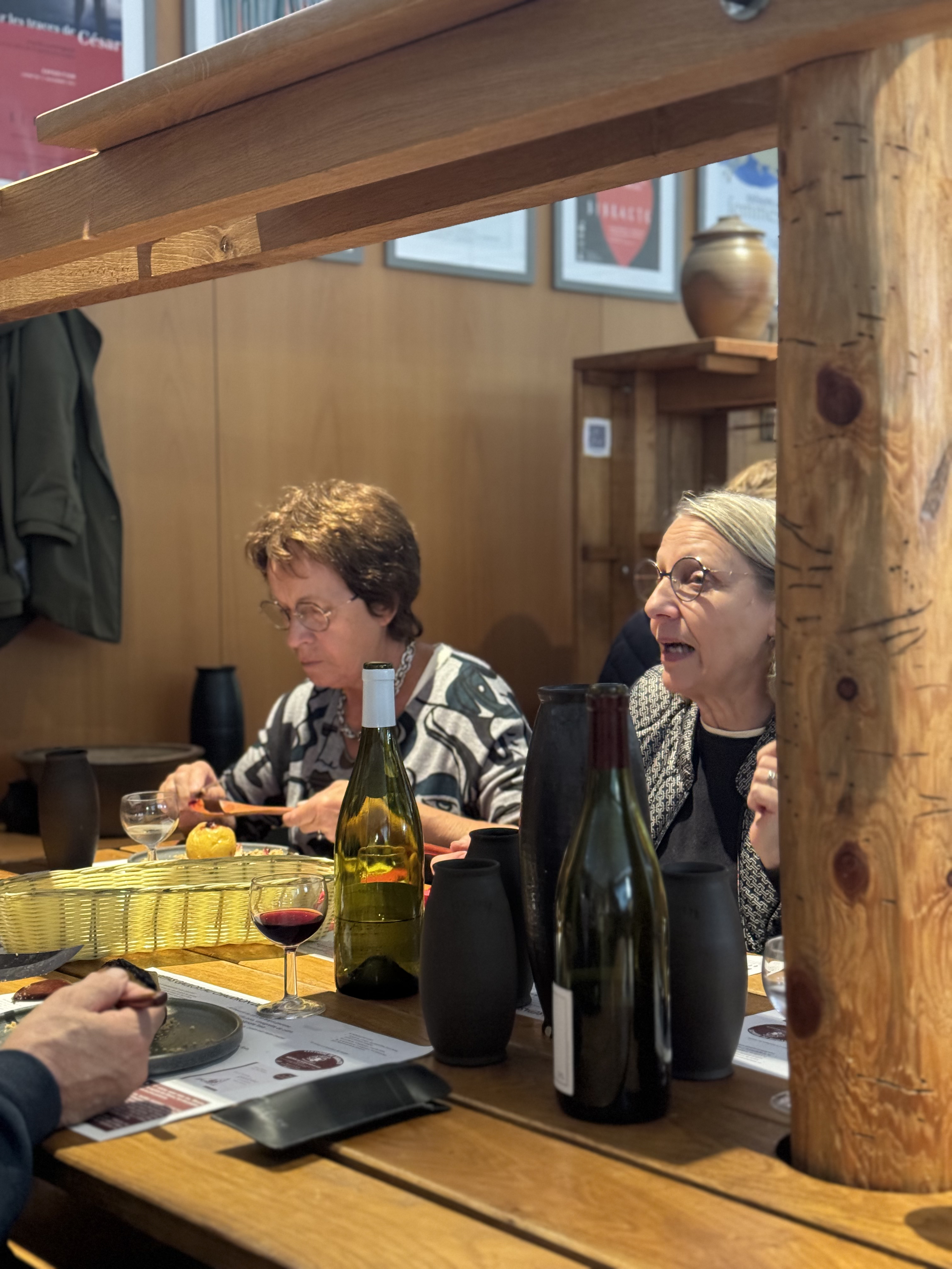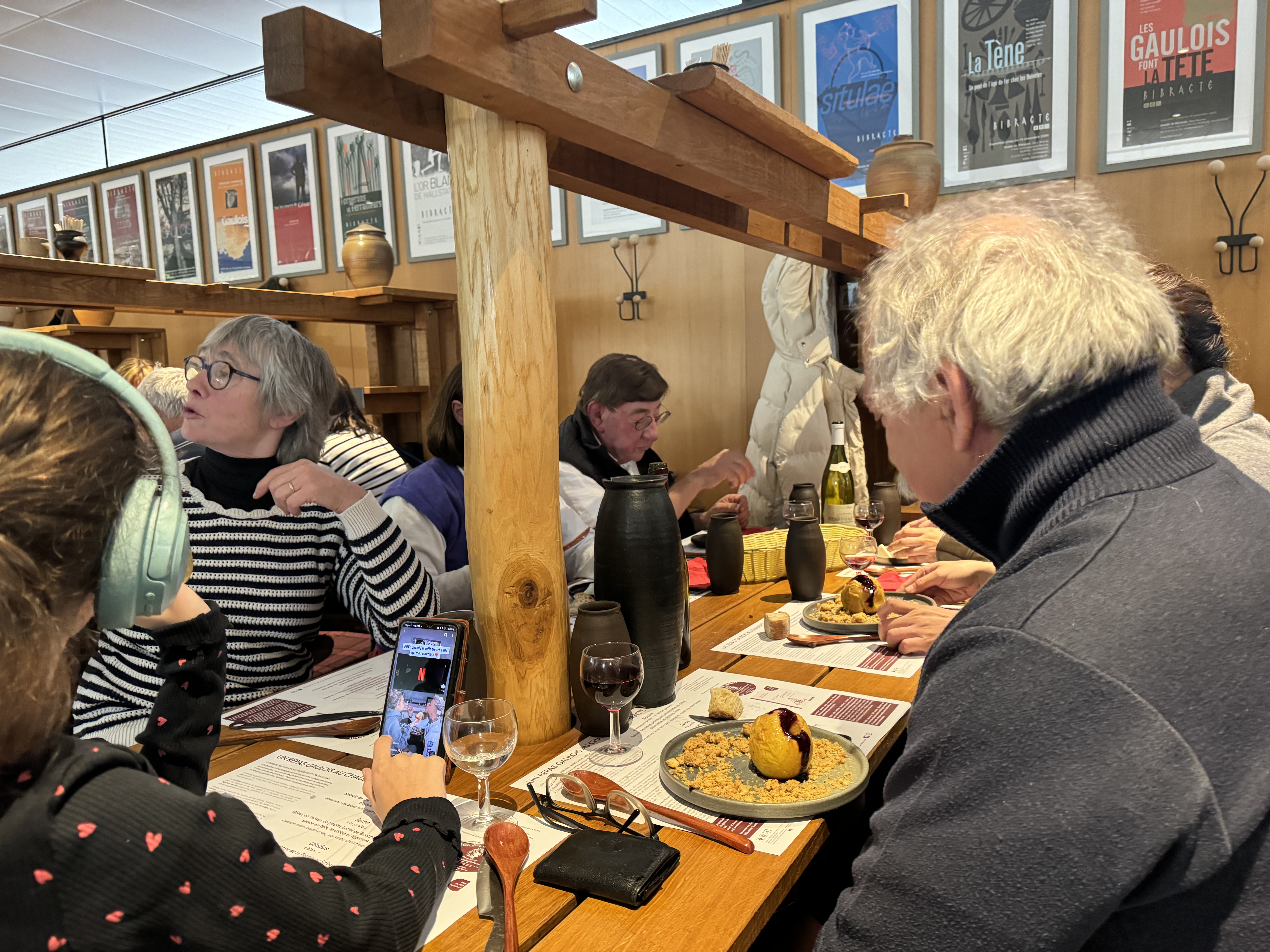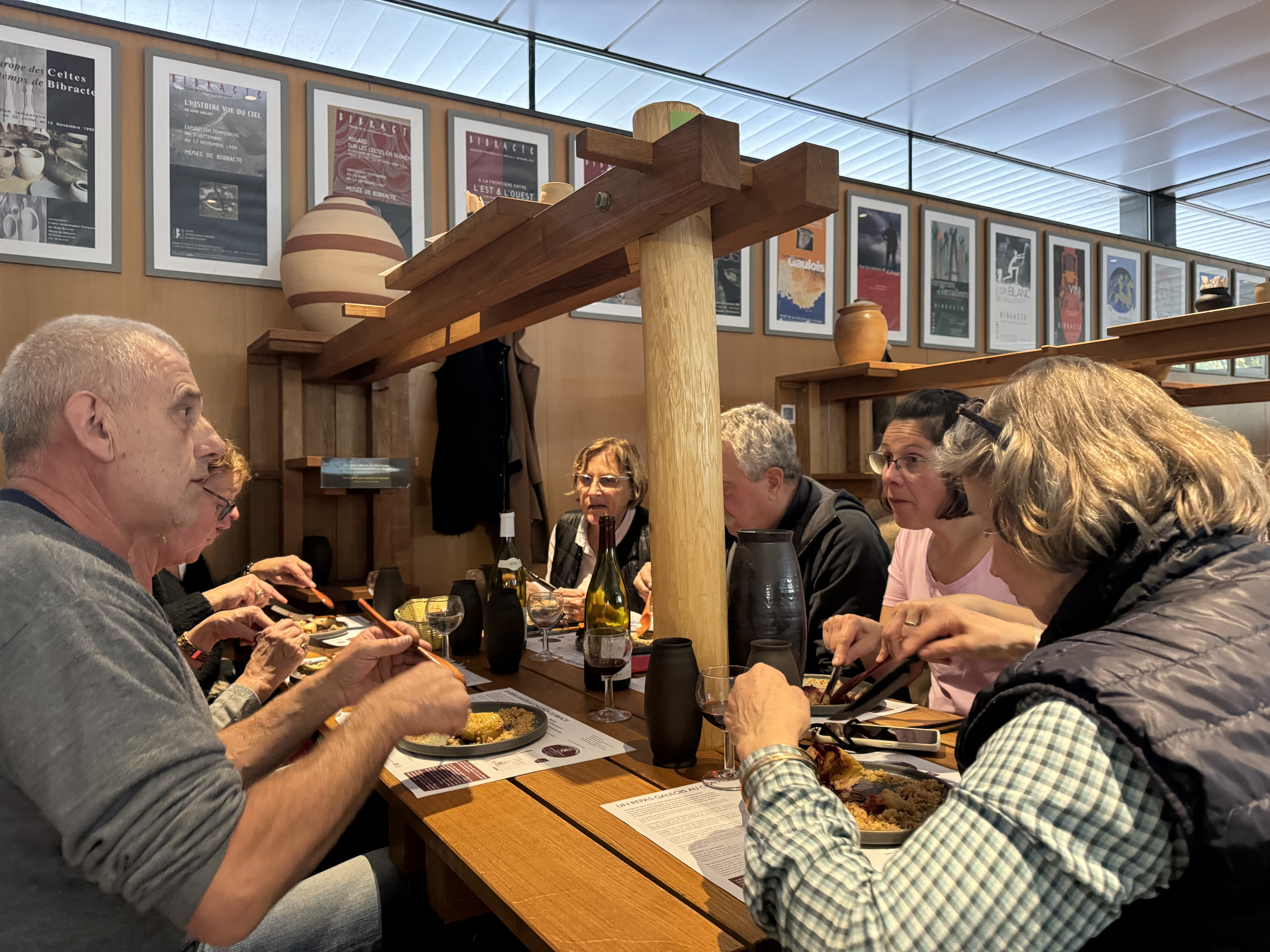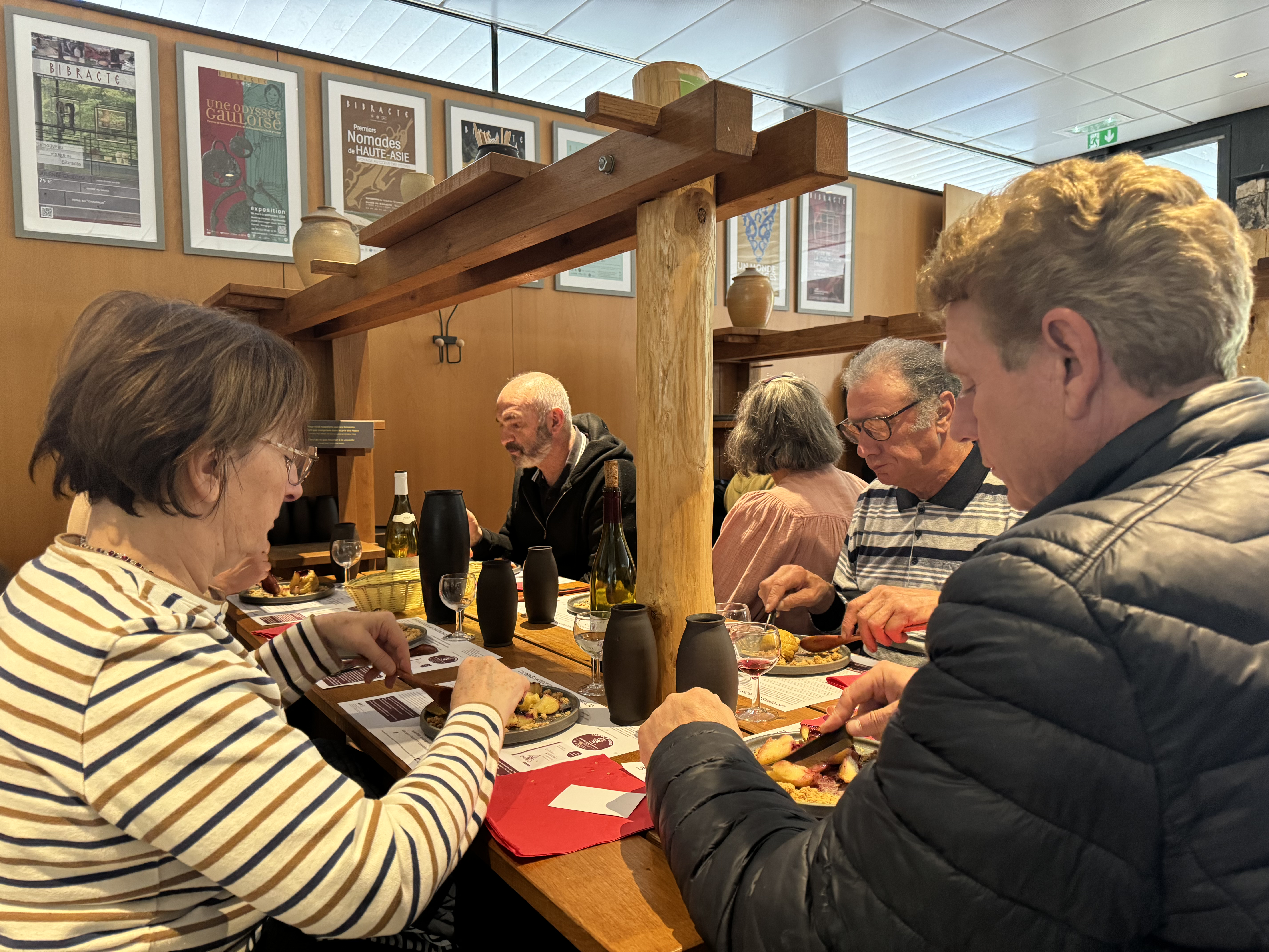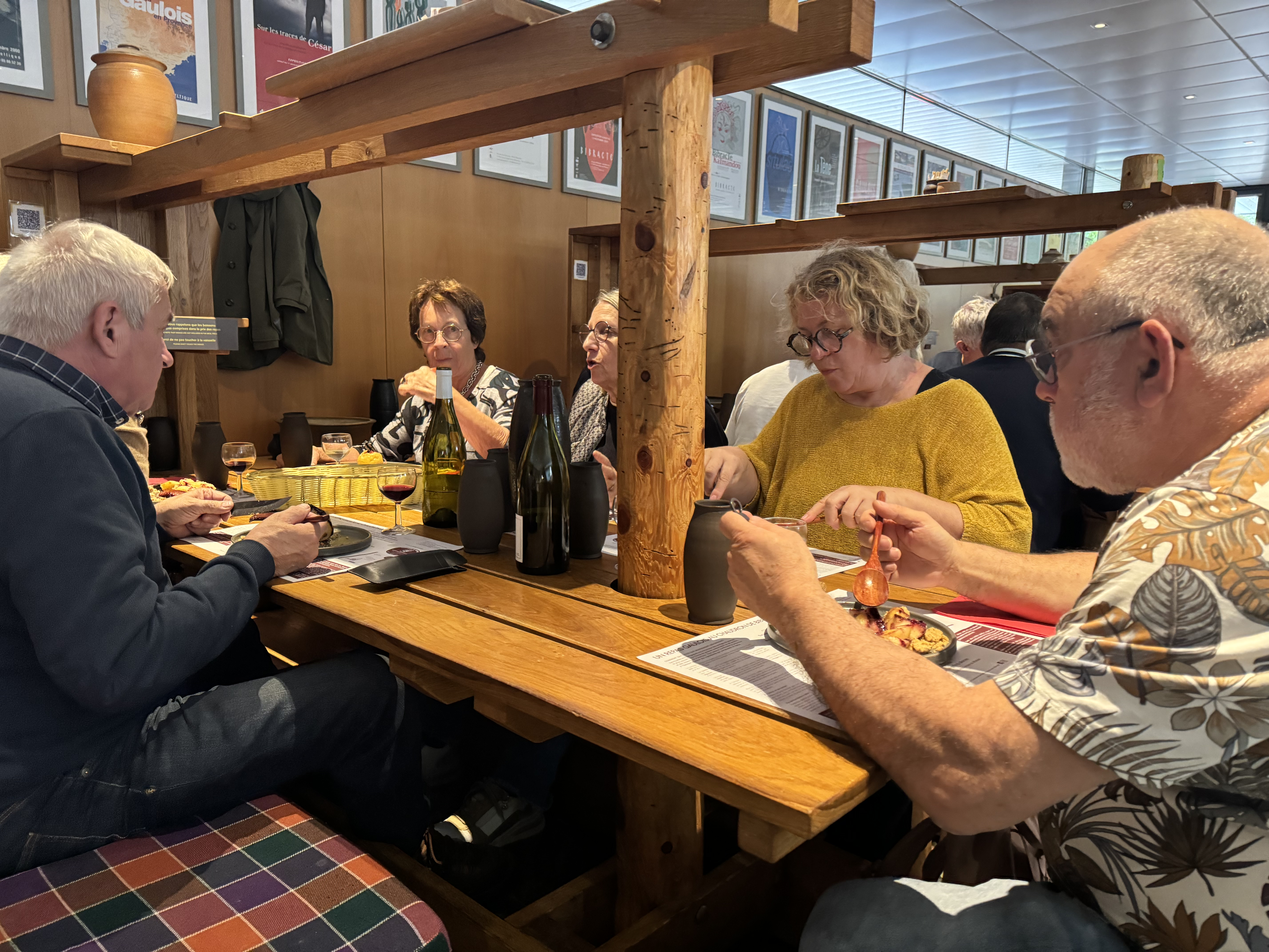 Après la très instructive visite guidée du site archéologique, nous nous sommes réchauffés autour de grandes tablées et d’un délicieux repas gaulois, l’occasion de faire plus amples connaissance.